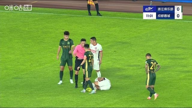 直播吧09月26日訊 中超第26輪,浙江vs蓉城,第12分鐘,蓉城球員萊切特疑似拉傷痛苦倒地,隊醫(yī)進(jìn)場治療。