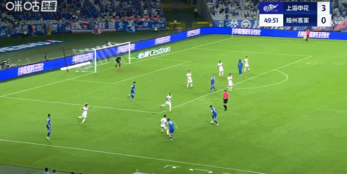第77分鐘,剛替補登場的于漢超挑傳助攻,楊澤翔單刀破門,申花5-0梅州。