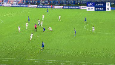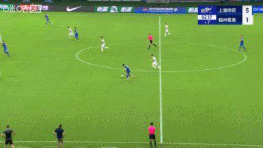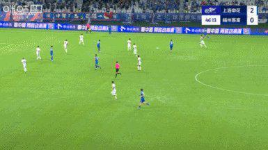 第47分鐘,阿蘇埃戲耍梅州客家隊員后助攻,劉誠宇破門,申花3比0梅州客家。