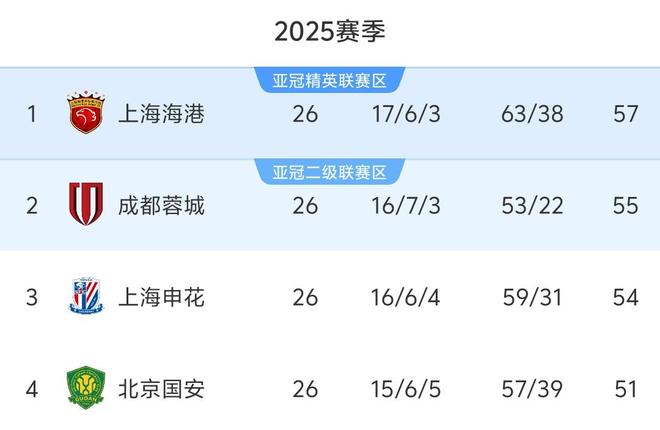 北京時(shí)間9月26日,中超聯(lián)賽第26輪首個(gè)比賽日4場(chǎng)比賽順利進(jìn)行。最新積分榜方面,前4球隊(duì)積分均突破50分,成都蓉城遭逼平后被上海海港反超,申花則仍舊落后榜首3分,梅州客家則繼續(xù)墊底。