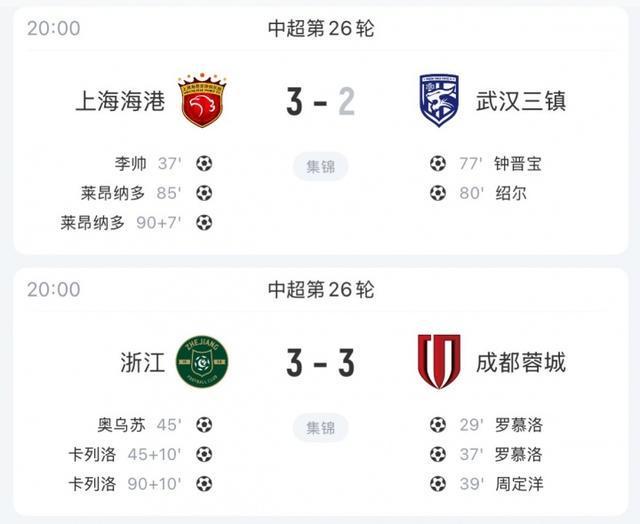 瘋狂!中超本輪爭(zhēng)冠積分時(shí)間線:蓉城一度領(lǐng)先3分,海港最終反超