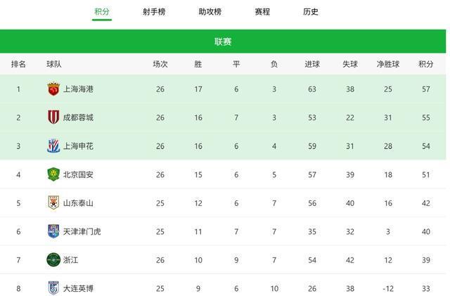 9月26日,中超聯賽第26輪上演奪冠沖刺大戲,領頭羊成都蓉城隊在3比0領先的大好局面下竟被浙江隊在最后時刻絕平,這讓上海海港隊主場3比2驚險戰(zhàn)勝武漢三鎮(zhèn)后意外成為領頭羊,上海申花隊以6比1擊敗副班長梅州客家迎來久違一勝繼續(xù)排名第三。此外,上輪在爭冠軍團略顯掉隊的北京國安找回感覺,主場以4比2勝大連英博,理論上依舊保留奪冠希望。