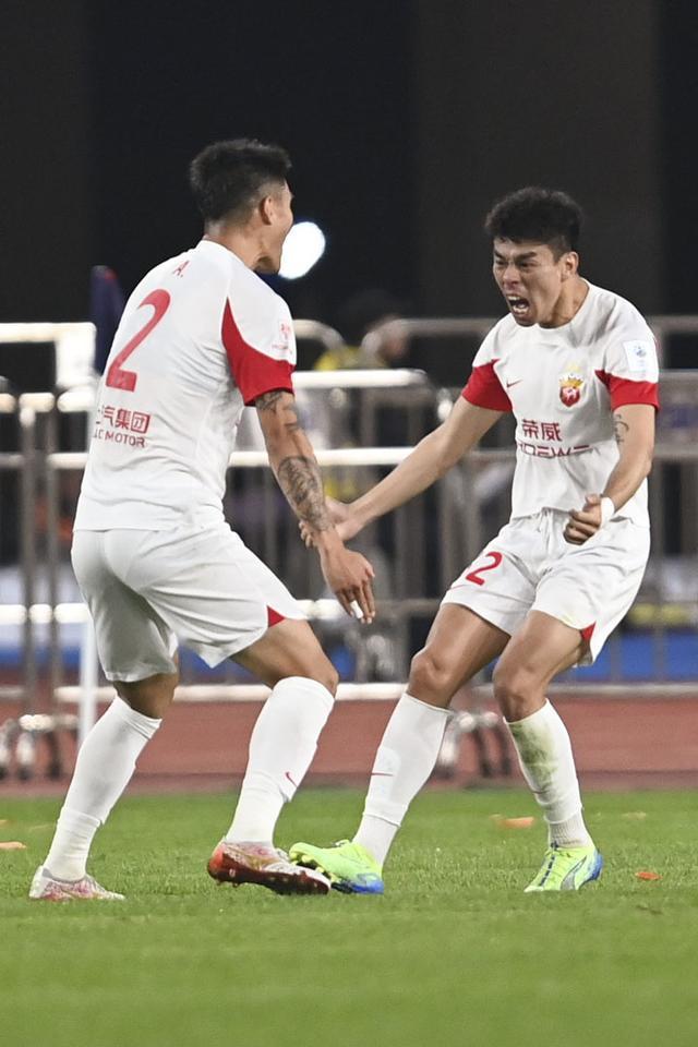 2024年11月23日,上海海港隊球員李帥(右)慶祝進球。 當日,在浙江溫州奧體中心體育場舉行的2024賽季中國足球協(xié)會杯決賽中,上海海港隊3比1戰(zhàn)勝山東泰山隊,獲得冠軍。 新華社記者 黃宗治 攝