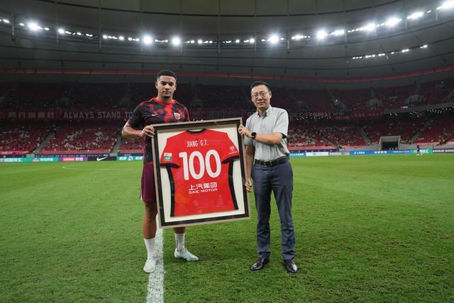 賽前,海港俱樂部為蔣光太頒發(fā)了100場紀念球衣。