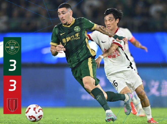 下半場,蓉城主帥徐正源讓球隊(duì)回防,而浙江隊(duì)則豁出去瘋狂進(jìn)攻。第90+10分鐘,浙江隊(duì)在左側(cè)推進(jìn),米特里策直塞,卡列洛在禁區(qū)里抽射近角,門將無能為力。蓉城隊(duì)遭遇了讀秒絕平,到手的3分變成了1分。徐正源為自己的保守付出了代價。