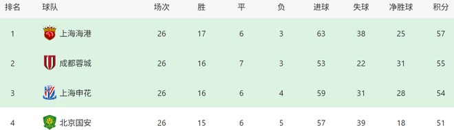 上輪聯(lián)賽,成都蓉城客場1比1戰(zhàn)平上海申花,周定洋“讀秒”攻入絕平進(jìn)球,成都蓉城在與上海海港同分的情況下,憑借雙殺對手的相互戰(zhàn)績繼續(xù)占據(jù)中超榜首。中超爭冠進(jìn)入到最白熱化階段,本輪之前成都蓉城和上海海港同積54分,上海申花51分緊隨其后。最后五輪聯(lián)賽,這三支球隊(duì)都不敢有任何閃失。