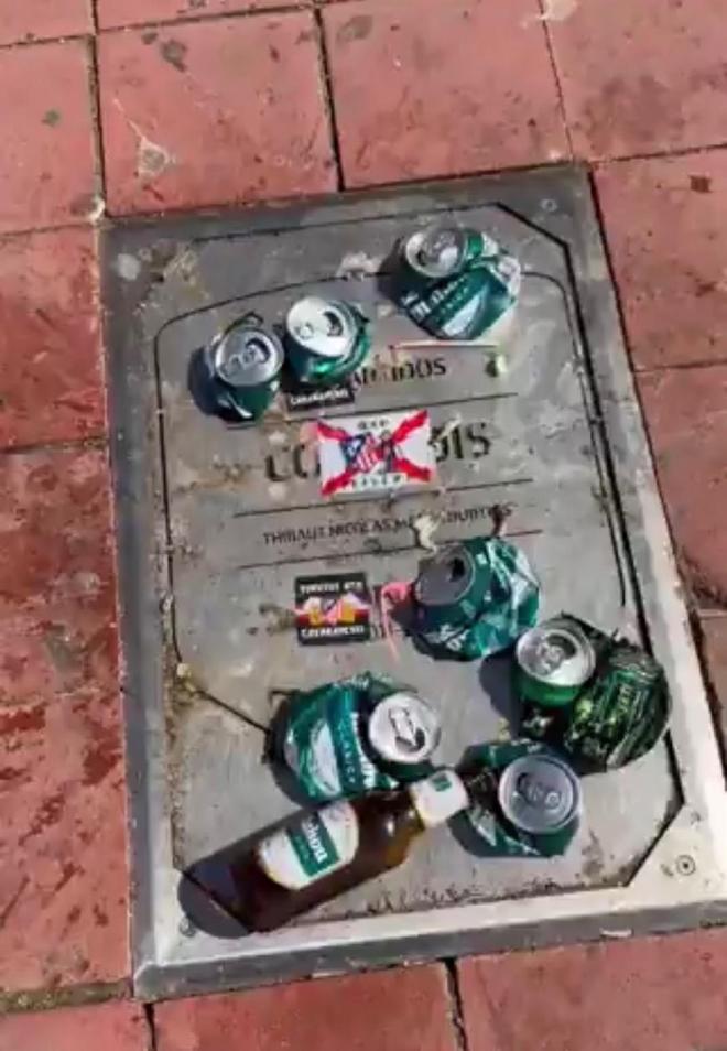 雷速體育9月27日訊 根據(jù)社交媒體的消息,馬德里德比之前,馬競迷向場外的庫爾圖瓦牌匾扔了垃圾。