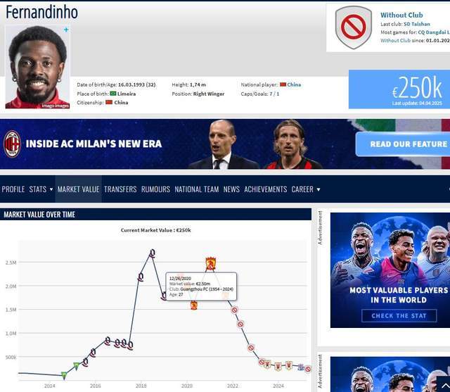 國(guó)足最失敗歸化:費(fèi)南多身價(jià)已跌至25萬(wàn)歐,仍保留中國(guó)國(guó)籍!