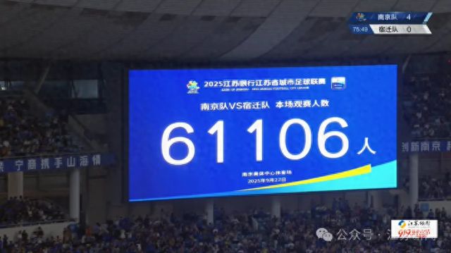 業(yè)余聯(lián)賽,單場61106名現(xiàn)場觀眾。這不是FM(“足球經(jīng)理”游戲)里隨手打出的數(shù)字,也不是什么“地球德比”的夸張宣傳。就在上周,南京奧體中心體育場,第13輪江蘇省城市足球聯(lián)賽(簡稱 “蘇超”),南京隊(duì)對陣宿遷隊(duì)的比賽,看臺(tái)上密密麻麻坐滿了六萬一千一百零六名球迷。