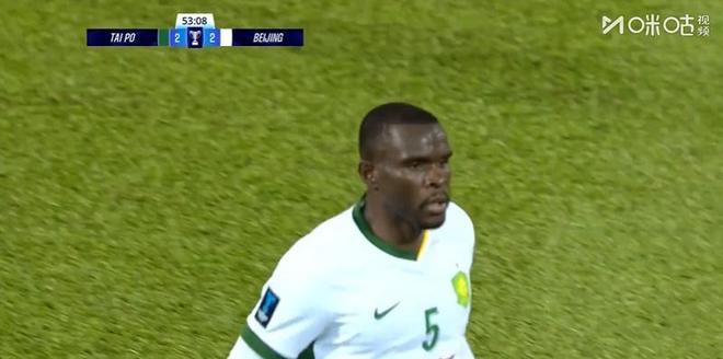 第53分鐘,國(guó)安利用前場(chǎng)右側(cè)角球機(jī)會(huì),恩加德烏將功補(bǔ)過(guò),頭球攻門(mén)被阻后機(jī)敏的將球掃進(jìn)大埔球門(mén),幫助國(guó)安將比分扳平。