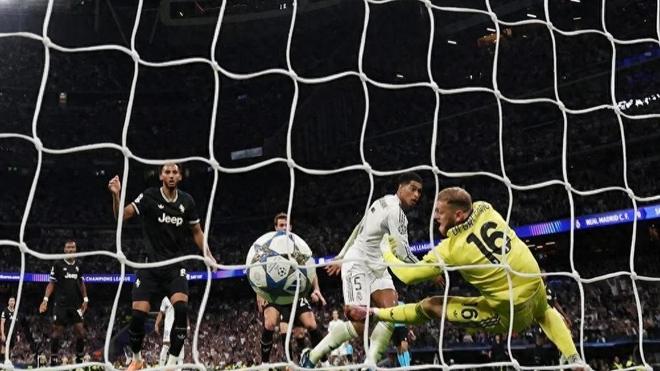 終于,在凌晨的都靈安聯(lián)球場,機(jī)會(huì)來了。當(dāng)維尼修斯的射門擊中立柱彈出的一瞬間,貝林厄姆如獵豹般沖入禁區(qū),冷靜補(bǔ)射破門!這一刻,仿佛是他過去幾個(gè)月沉默等待的總爆發(fā)——他在向世界宣告:我回來了,而皇馬的未來,依然圍繞著我轉(zhuǎn)動(dòng)。