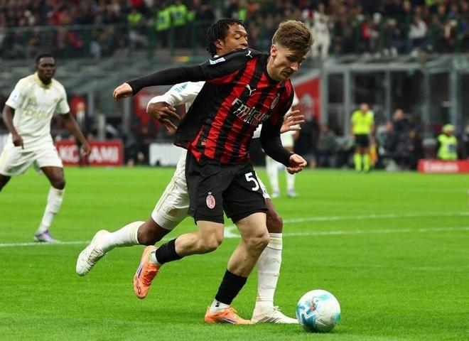 逃過一劫的比薩,在第86分鐘實現(xiàn)反超,阿金桑米羅中圈在三名AC米蘭球員的圍剿之下,送出一腳過頂長傳,直接給恩佐拉創(chuàng)造出了單刀機(jī)會,后者也不負(fù)眾望單挑邁尼昂破門得分,幫助比薩將比分改寫為了2-1,看到了隊史首次擊敗紅黑軍團(tuán)的曙光。
