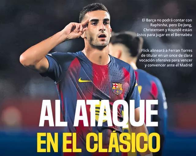 本周日23點(diǎn)15分,西甲第10輪打響國家德比,皇馬主場迎戰(zhàn)巴薩。10月25日,《每日體育報(bào)》頭版頭條報(bào)道指出,巴薩主帥弗里克已經(jīng)敲定前場三叉戟,25歲的費(fèi)蘭-托雷斯出任中鋒。費(fèi)蘭一共3次洞穿皇馬大門,這次國家德比,25歲的巴薩中鋒,期待4殺皇馬。