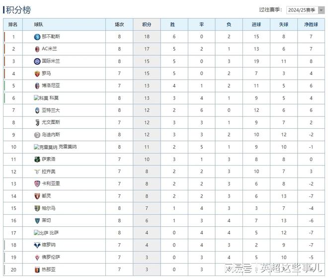 意甲最新積分榜:那不勒斯力克國(guó)米登頂,亞特蘭大保住不敗金身!