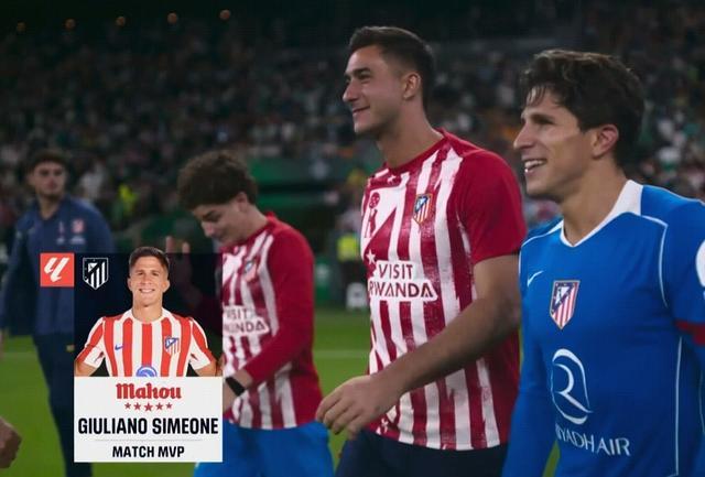 官方消息,朱利亞諾-西蒙尼當選皇家貝蒂斯對陣馬德里競技一役全場最佳。